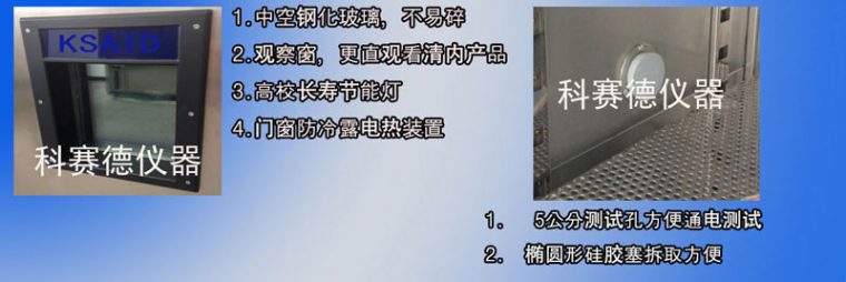首先我們了解恒溫恒濕試驗(yàn)機(jī)的視窗玻璃,它作用是為了觀察工作室。在做低溫測試(-40℃)時(shí),恒溫恒濕試驗(yàn)機(jī)的整個(gè)箱體都是冷的,唯獨(dú)置于艙門上的視窗玻璃是熱的,而且還有點(diǎn)燙手。因?yàn)楹銣睾銤裨囼?yàn)機(jī)里面面冷,外面熱會(huì)形成冰霜,所以科賽德儀器的觀察窗采用的都是發(fā)熱體內(nèi)嵌式鋼化玻璃,防霧視窗玻璃能使客戶隨時(shí)都可以清晰的觀察試驗(yàn)箱里面的試樣狀況了。