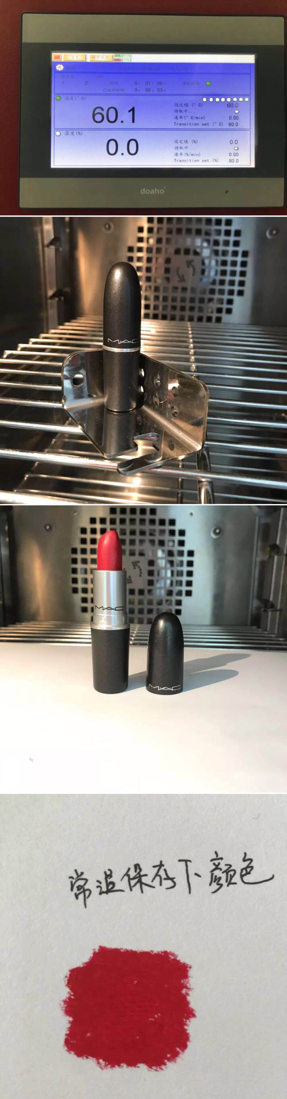 使用高大上的高低溫交變濕熱(這是重點)模擬日常溫度對口紅的影響